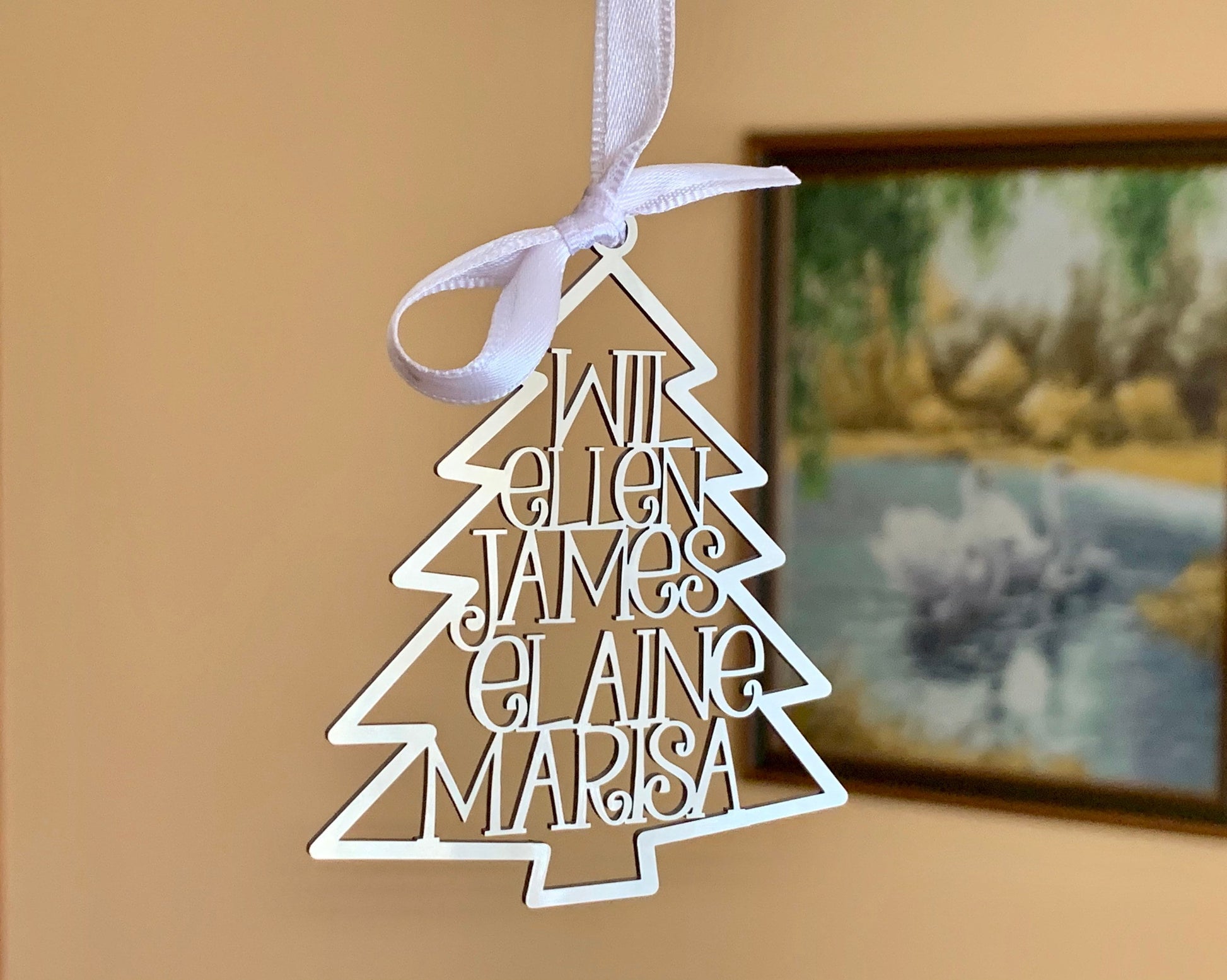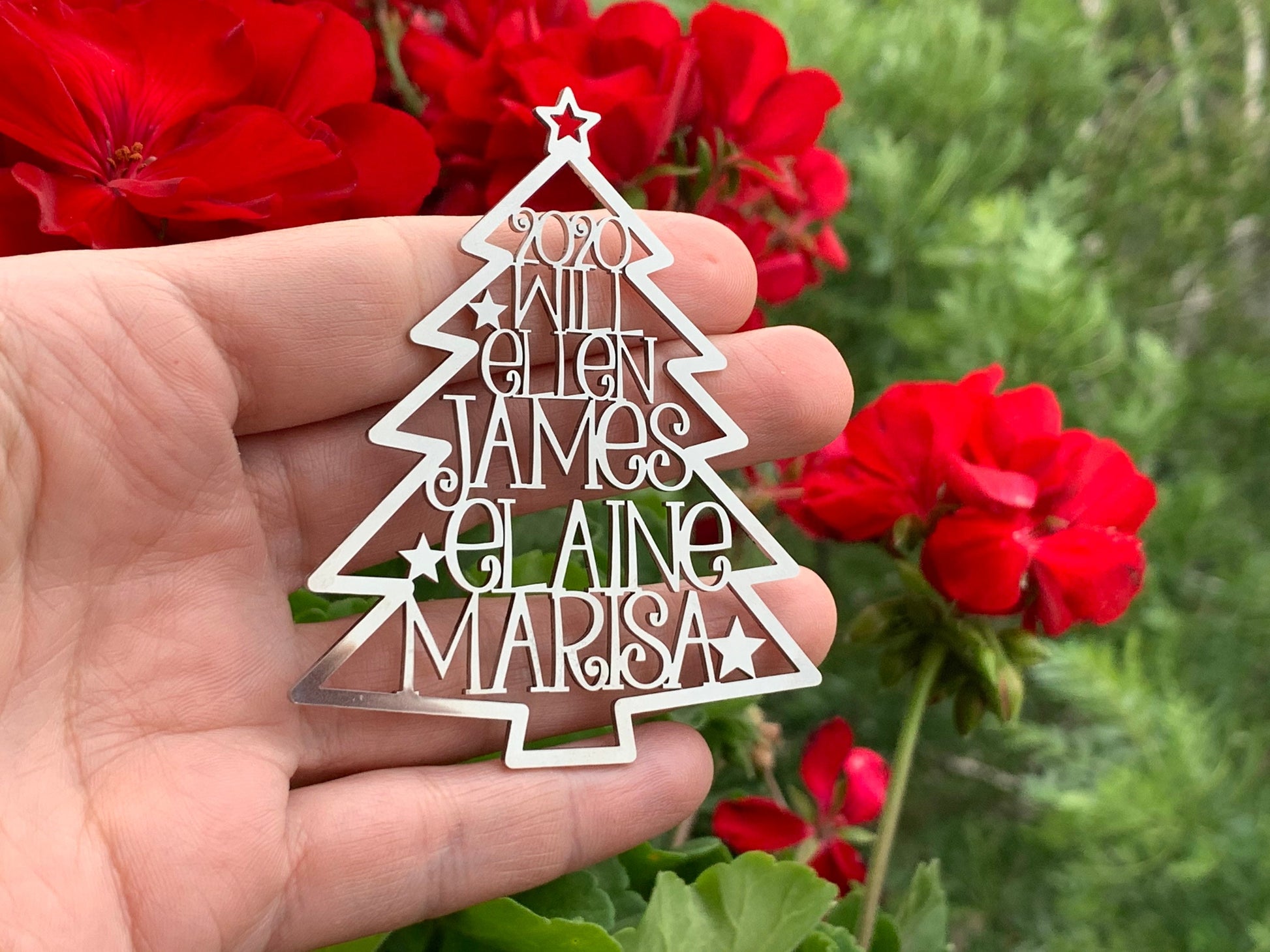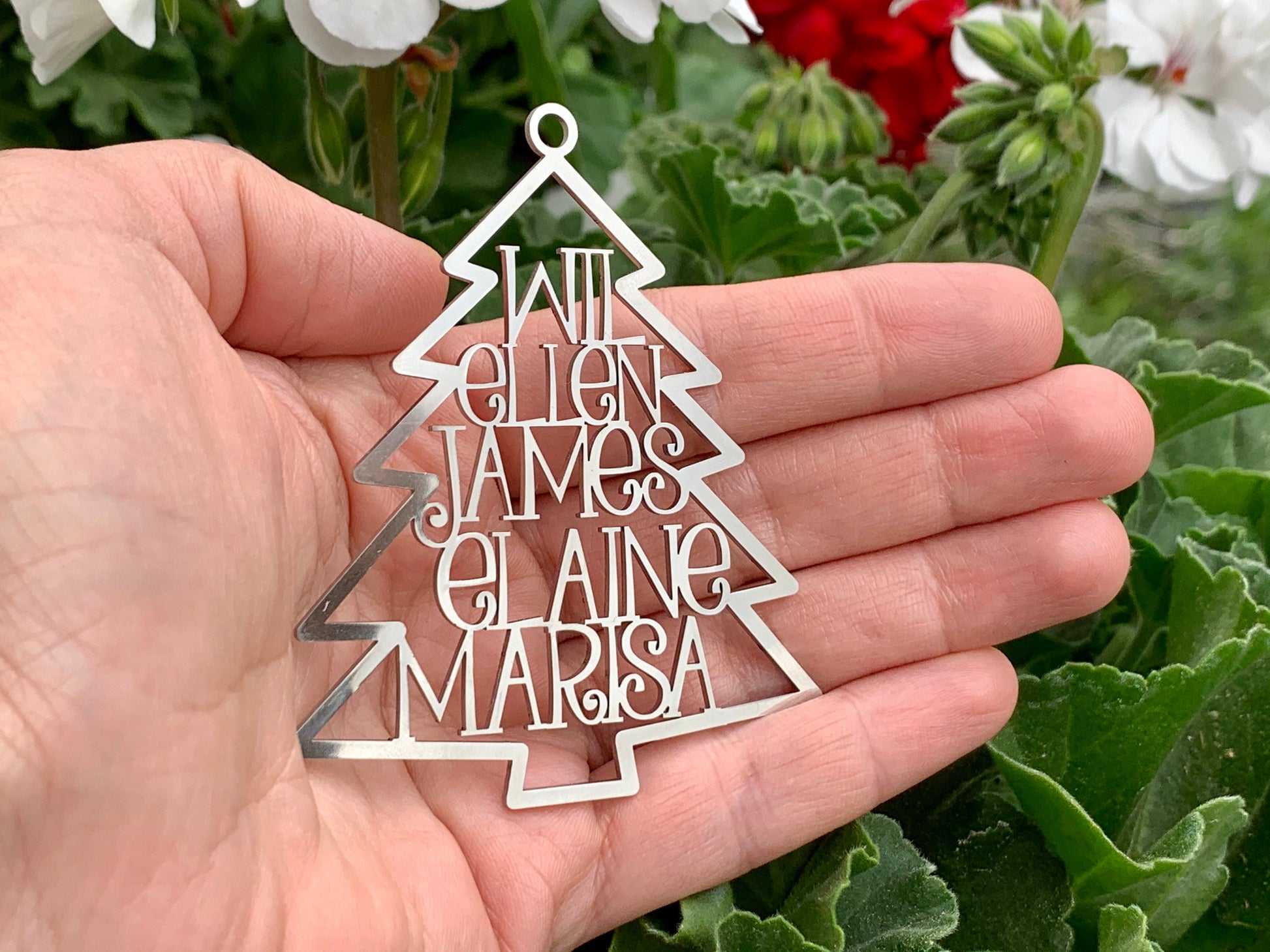 Celebrate the season with a personalized stainless steel Christmas tree ornament featuring your family’s names and an optional year at the top (2025, 2026, or your choice). Precision-cut for crisp detail and a luxe silver finish, it’s a beautiful keepsake for your tree - or a thoughtful gift for loved ones.